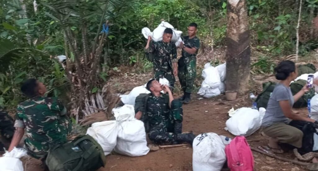 TAPTENG, INSERTRAKYAT.com — Di tengah cuaca ekstrem dan medan longsor yang melumpuhkan akses darat, loreng atau prajurit TNI memikul logistik dengan berjalan kaki demi memastikan bantuan sampai ke warga terdampak bencana di Tapanuli Tengah.