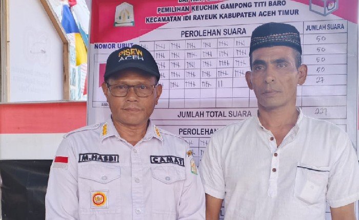 ACEH TIMUR, INSERTRAKYAT.com– Abdul Manaf kini menunggu pelantikan resmi sebagai Keuchik Gampong Titi Baroe, Kecamatan Idi Rayeuk, Kabupaten Aceh Timur. Kamis, (16/10/2025).