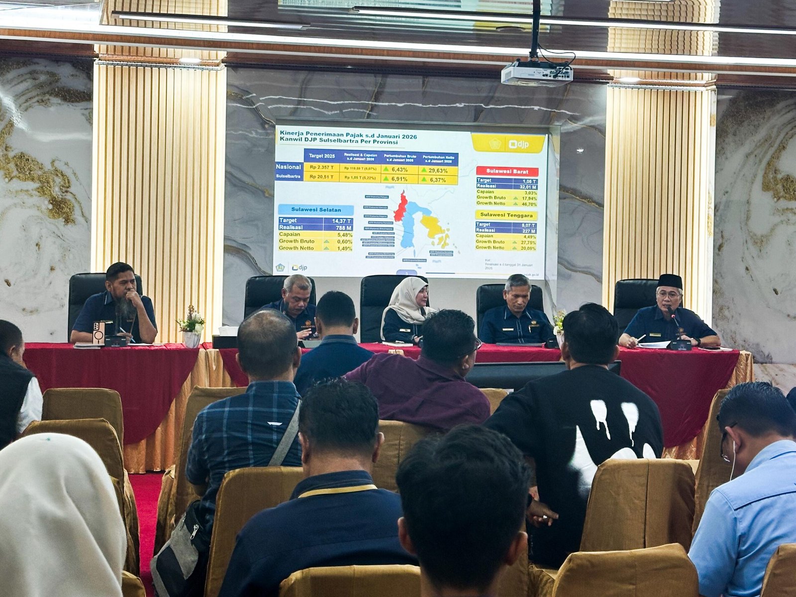 Adnan Muis, Kepala Bidang Data dan Pengawasan Potensi Perpajakan Kanwil DJP Sulselbartra, memaparkan kinerja penerimaan negara. “Penerimaan pajak hingga akhir Januari tercatat Rp788,1 miliar, didominasi PPh dan PPN,” jelas Adnan. Penerimaan kepabeanan dan cukai mencapai Rp16,8 miliar, sementara PNBP Rp251,4 miliar dengan kontribusi terbesar dari Badan Layanan Umum Rp148,1 miliar.