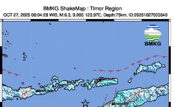 JAKARTA, INSERTRAKYAT.com— Gempa bumi berkekuatan magnitudo 6,3 mengguncang wilayah Timor Tengah Utara, Nusa Tenggara Timur, pada pukul 00:04:28 WIB.