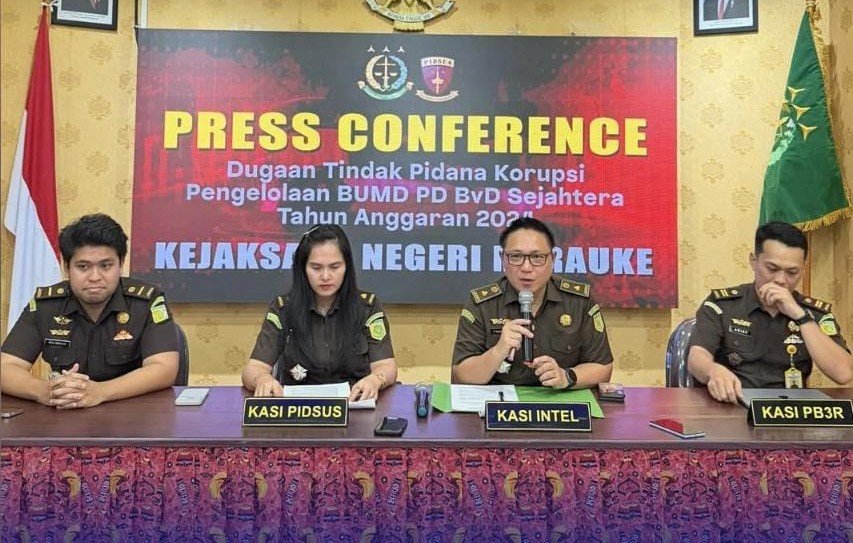 MERAUKE (INSERTRAKYAT.com Jum’at 27 Februari) — Kejaksaan Negeri Merauke resmi menaikkan status penanganan dugaan korupsi pengelolaan keuangan PD BvD Sejahtera milik Kabupaten Boven Digoel dari penyelidikan ke tahap penyidikan. Langkah hukum ini ditegaskan melalui siaran pers internal kejaksaan, menyusul temuan serius dalam pengelolaan BUMD Tahun Anggaran 2024.