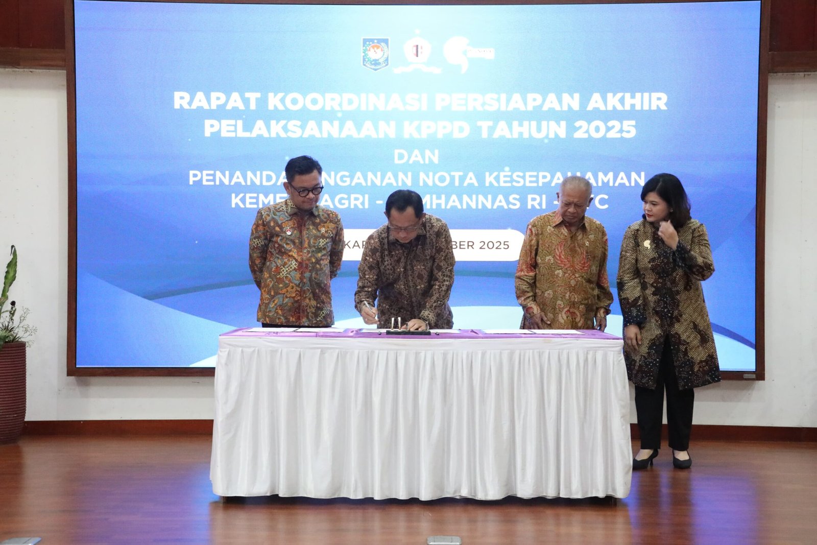 Minister of Home Affairs Muhammad Tito Karnavian, Lemhannas Governor Ace Hasan Syadzily, and PYC Founder Purnomo Yusgiantoro officially signed a Memorandum of Understanding on the Regional Leadership Reinforcement Course (KPPD 2025) at Lemhannas Headquarters, Friday (October 24, 2025).