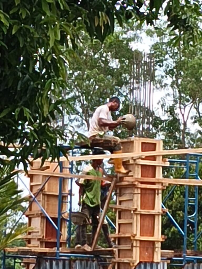 Dalam pelaksanaan teknis, pengecoran tiang dan kolom dilakukan secara manual tanpa concrete pump. Metode ini berisiko menurunkan kualitas struktur bangunan. Selain itu, kontraktor diduga tidak menggunakan Job Mix Design (JMD), yang merupakan standar utama dalam menentukan komposisi beton.