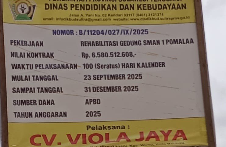 KOLAKA — Proyek rehabilitasi SMA Negeri 1 Pomalaa, Kabupaten Kolaka, Sulawesi Tenggara, dengan nilai Rp6,58 miliar dari APBD Tahun 2025, terindikasi sarat penyimpangan. Temuan ini mencuat setelah laporan warga sekolah yang mencurigai adanya kejanggalan dalam proses pembangunan, Rabu (18/3/2026). Lokasinya tak jauh dari kursi bengong Pidsus Kejari Kolaka.