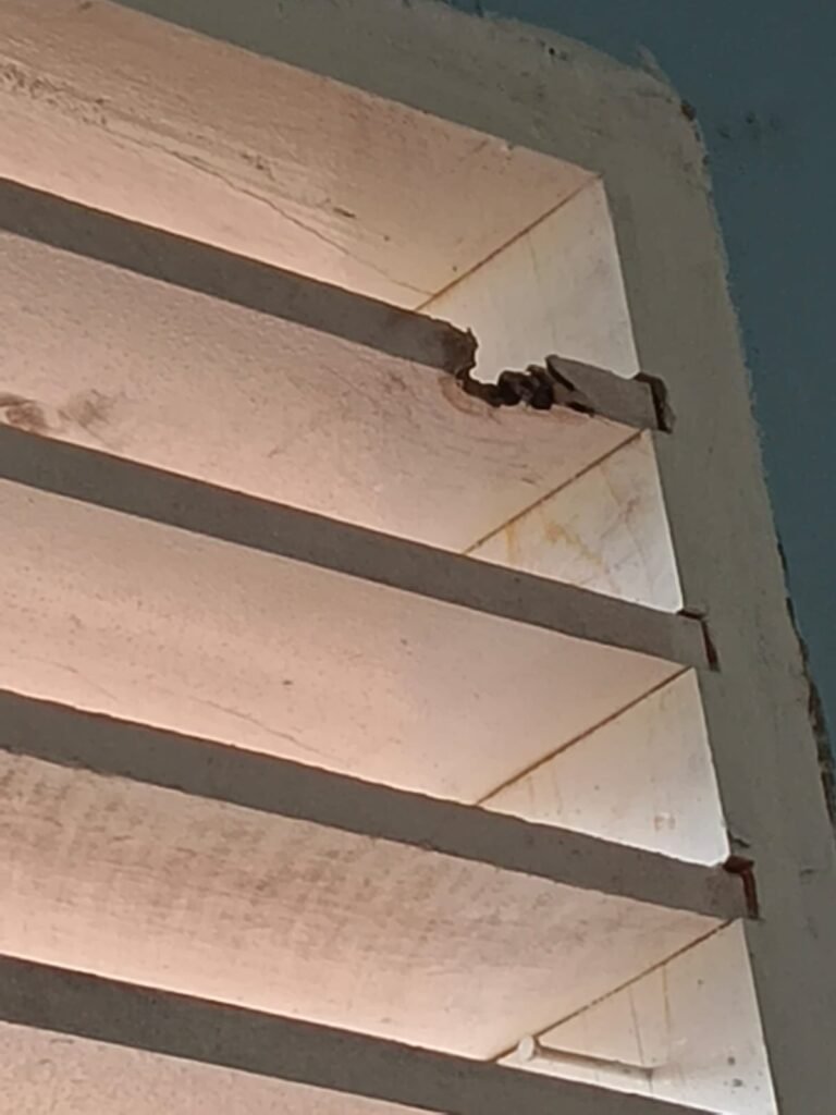 Kualitas material kayu turut disorot. Kayu kusen pintu, jendela, dan ventilasi diduga berkualitas rendah, masih basah, serta memiliki cacat. Pekerjaan daun pintu juga dinilai tidak sesuai spesifikasi, dengan hasil pengecatan tipis dan tidak rapi.