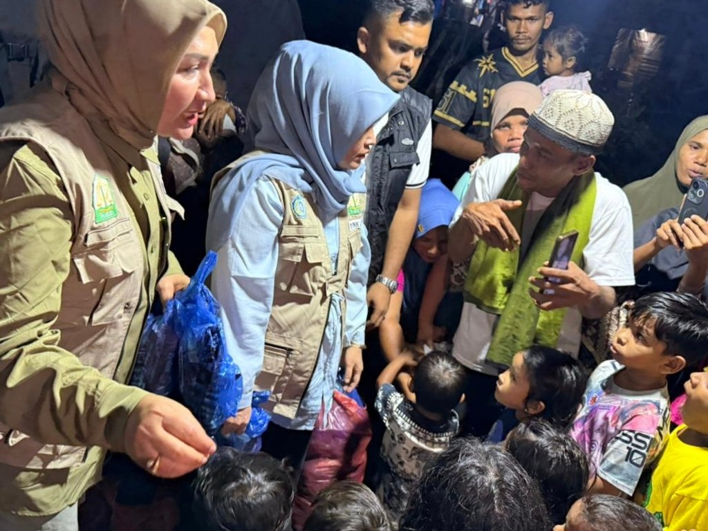 ACEH UTARA, INSERTRAKYAT.COM – Langit perlah menua, perlahan gelap merambat saat Ketua TP PKK Aceh Marlina Muzakir, bersama Staf Ahli TP PKK Aceh Mukarramah Fadhlullah, serta influencer Cut Bul, mengantarkan bantuan ke Meunasah Gampong Paya Rubek Kecamatan Sawang, Senin (22/12/2025) malam.