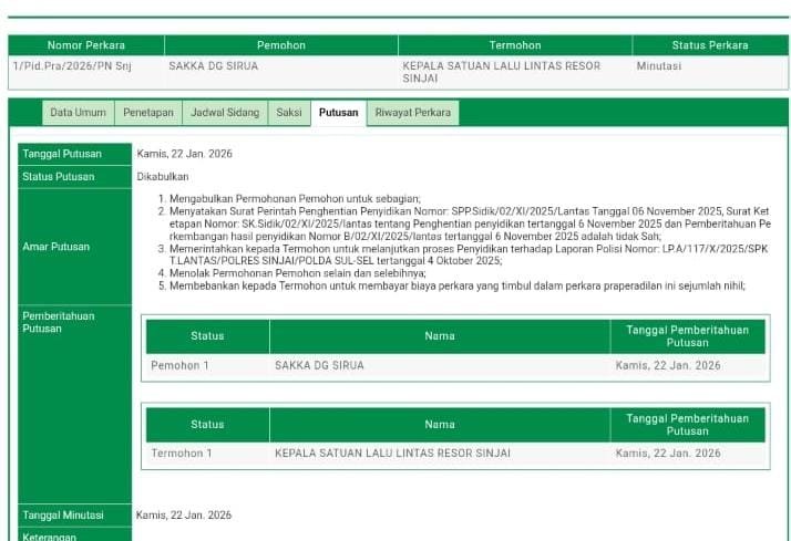 Klik /Baca selengkapnya: PN Sinjai Batalkan SP3 dalam Kasus Kecelakaan Lalu Lintas di Sinjai Selatan, Daeng Nuru Sujud Syukur