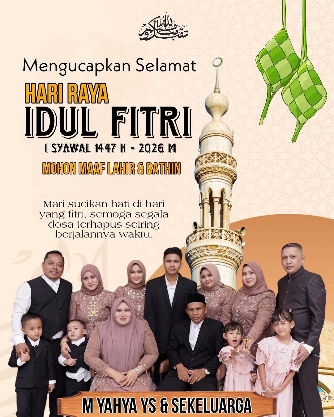 IDI RAYEUK, INSERTRAKYAT.COM – M. Yahya Ys, beserta keluarga besar mengucapkan selamat Hari Raya Idul Fitri 1447 Hijriah yang jatuh pada tanggal 21 Maret 2026, kepada seluruh masyarakat Aceh Timur khususnya Idi Rayeuk.
