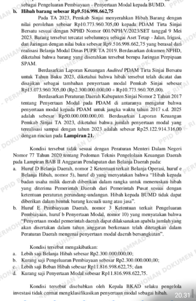 Satu persoalan yang sangat besar adalah temuan BPK terkait dengan pengelolaan dana hibah yang melibatkan BUMD pada PDAM Tirta Sinjai Bersatu.