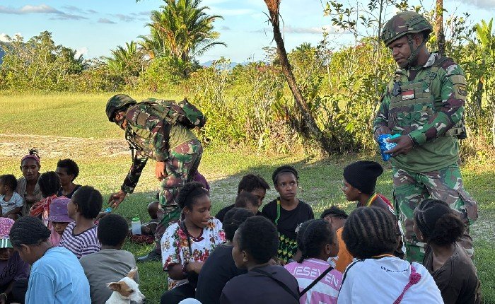 Kegiatan diisi interaksi langsung antara prajurit TNI dan anak Papua yang menciptakan suasana akrab dan persaudaraan. Anak-anak bermain, bercanda, dan menerima perhatian prajurit secara hangat.