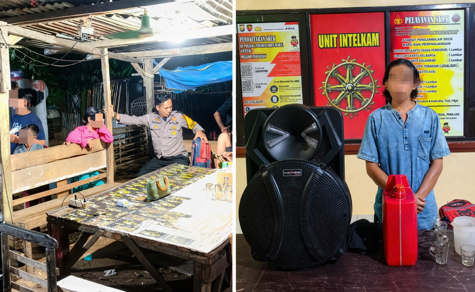 Polisi kemudian mengamankan pemilik lapak berinisial MRL (50) bersama barang bukti berupa sekitar sepuluh liter miras jenis ballo. Sejumlah peralatan sound system turut diamankan.