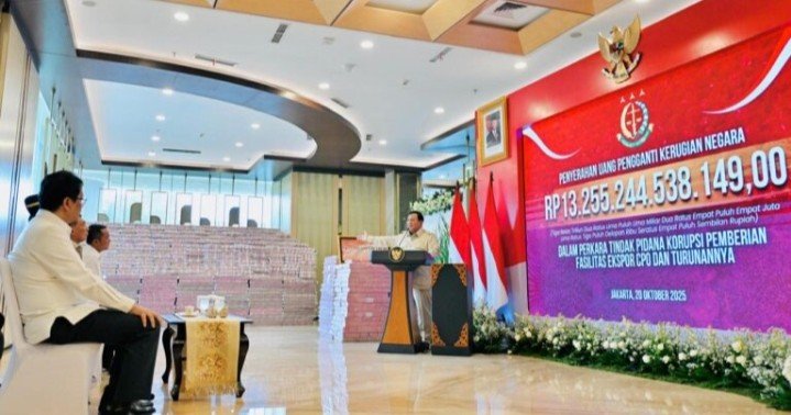JAKARTA, INSERTRAKYAT.com – Presiden Prabowo Subianto menegaskan bahwa pengembalian kerugian negara sebesar Rp13,2 triliun dari kasus korupsi pemberian fasilitas ekspor CPO dan turunannya bukan sekadar angka, tetapi peluang strategis untuk memperbaiki kehidupan rakyat.