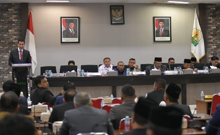 SEKERTARIS daerah (Sekda) Aceh, M. Nasir, menyampaikan Nota Keuangan dan Raqan APBA 2026 pada Paripurna DPRA, Selasa (18/11/2025). Penyusunan anggaran mengacu pada KUA-PPAS 2026 dan RKPA 2026 berdasarkan Pergub Aceh Nomor 26 Tahun 2025.