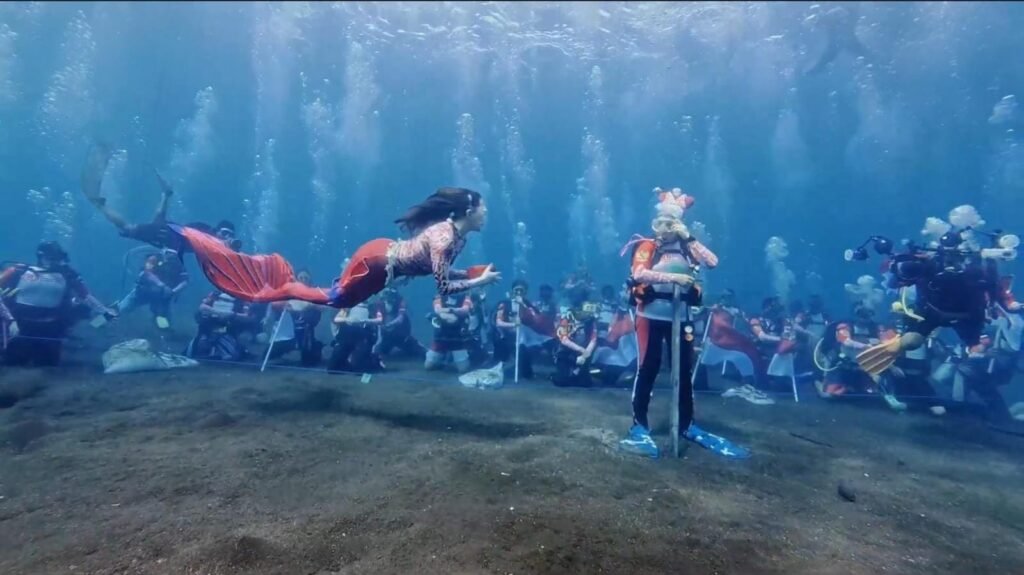 Upacara berlangsung di Laut Sulamadaha, Ternate, Maluku Utara, Sabtu, Agustus 2025.Sebanyak 120 penyelam dari berbagai daerah turut serta dalam kegiatan unik tersebut.